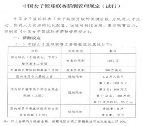 1,国内球员,包含港澳台球员,加在一起的整体工资不得超过1080万人民币。