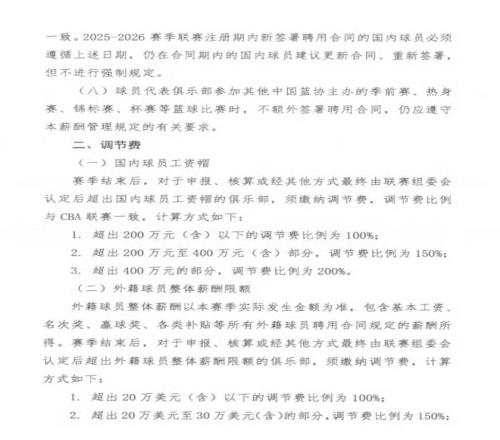 2,外国球员整体的工资,不得超过100万美元。