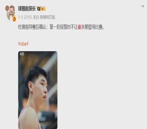 本赛季崔永熙选择把天赋带回CBA,并被广州队交易到了广东队,但如上所述他的伤病还没有完全好利落,预计今年三月中旬才会复出。