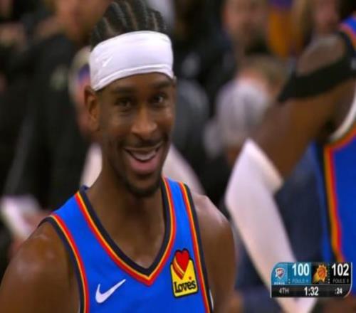 最终,太阳队凭借着布克的三分绝杀,以108-105险胜雷霆。