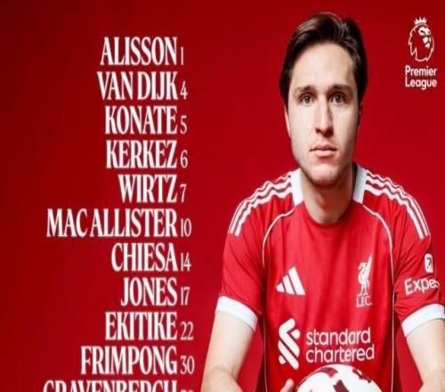 顶替重伤莱奥尼!利物浦官方:补报小基耶萨进入欧冠名单